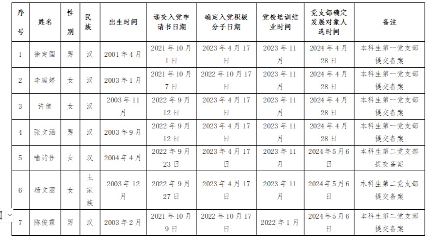 公司本科生徐定国等同志入党积极分子教育培养满一年,经相关支部审查基本条件、征求党内外意见、支委会研究、伟德国际1946党委备案审查,将该同志列为发展对象。根据发展党员工作相关要求,现予以公示。