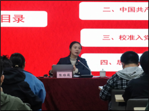 张维薇老师以《端正入党动机,以实际行动争取早日入党》为题授课。她带领学员们回顾百年党史取得的伟大成就,在分析中国共产党与青年命运的同频共振中了解中国共产党是什么样的党。结合钱学森、邓稼先等优秀共产党员的先进事迹,她强调,端正入党动机是入党的前提,是经受考验的保障,我们要从形式入党到思想入党、行动入党,鼓励学员加强理论学习、投身社会实践,争取早日成为合格共产党员。