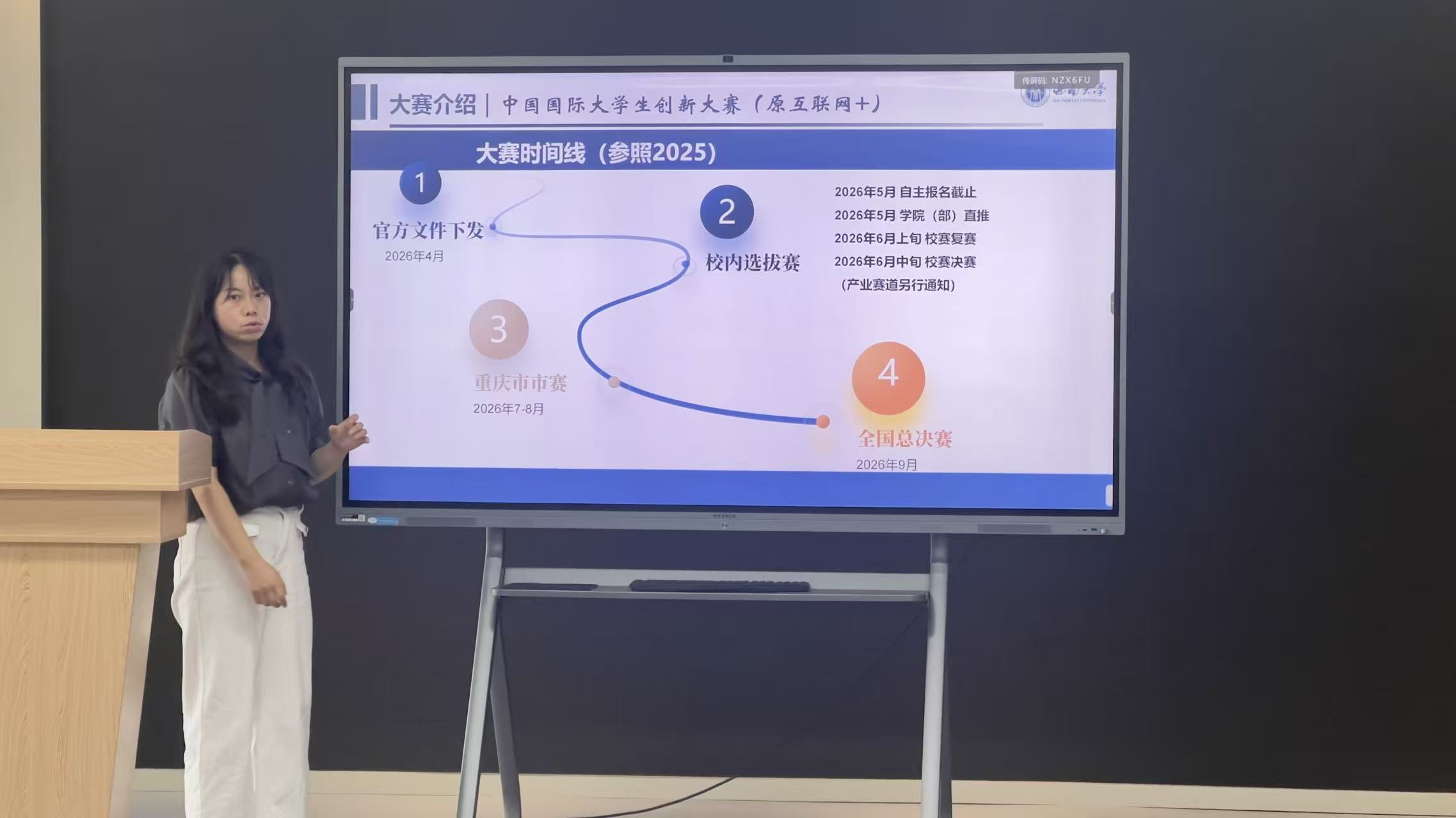 在学工发展论坛环节,邀请了胡利梅、吴鹏程两位老师围绕员工竞赛指导经验作了主题发言。胡利梅老师分享了自己指导中国国际老员工创新创业大赛等高水平竞赛的宝贵经验。她通过生动的案例,讲述了如何引导员工从实际需求中发现科学问题、构建解决方案。吴鹏程老师重点讲解了如何帮助员工在竞赛中更好地进行资源的整合。陈睿、张凤运、林毓培等老师分别分享了自己指导员工参加高水平竞赛的经验。