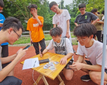 趣味游戏包括默契姿势拍照、经典投壶、你划我猜、红歌歌词接龙、夹乒乓球接力五个游戏。趣味游戏不仅考验同学们身体协调性、坚持不懈的精神、队伍成员默契度,还切实培养了同学们迅速投入游戏的集中心态。游戏现场欢笑声不断,节奏紧凑,同学们也时刻保持热情,积极参与完成了游戏。