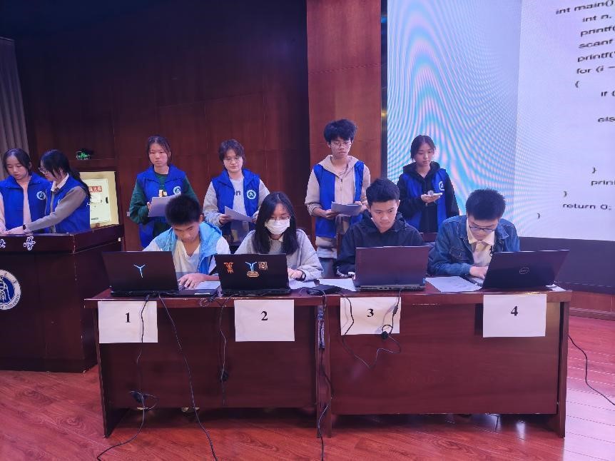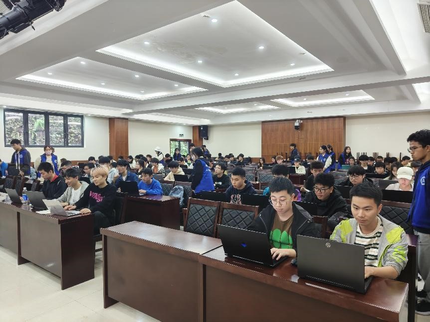 C语言复现比赛分为三轮,采取晋级制,每一组率先完成的两名晋级至下一轮。参赛选手来到指定比赛区域后由工作人员分发复现的代码,随着比赛开始一声令下,选手们全神贯注,眼神在试题和电脑屏幕来回切换,争夺时间的每分每秒。当然速度不是全部,输出的代码能成功运行才是关键,两者兼备综合评价才算最优胜者。