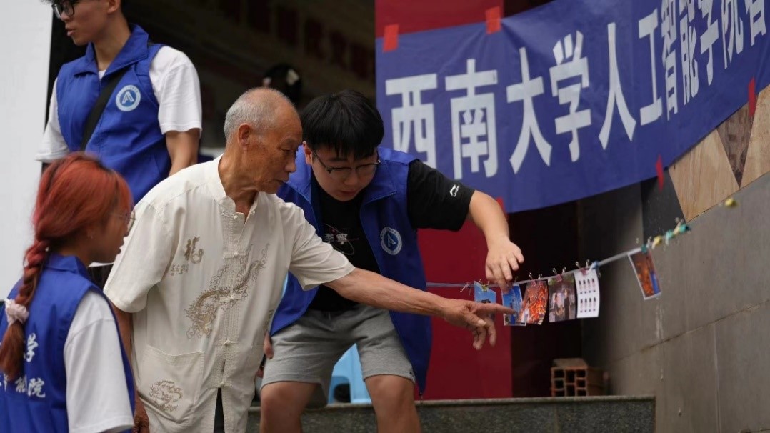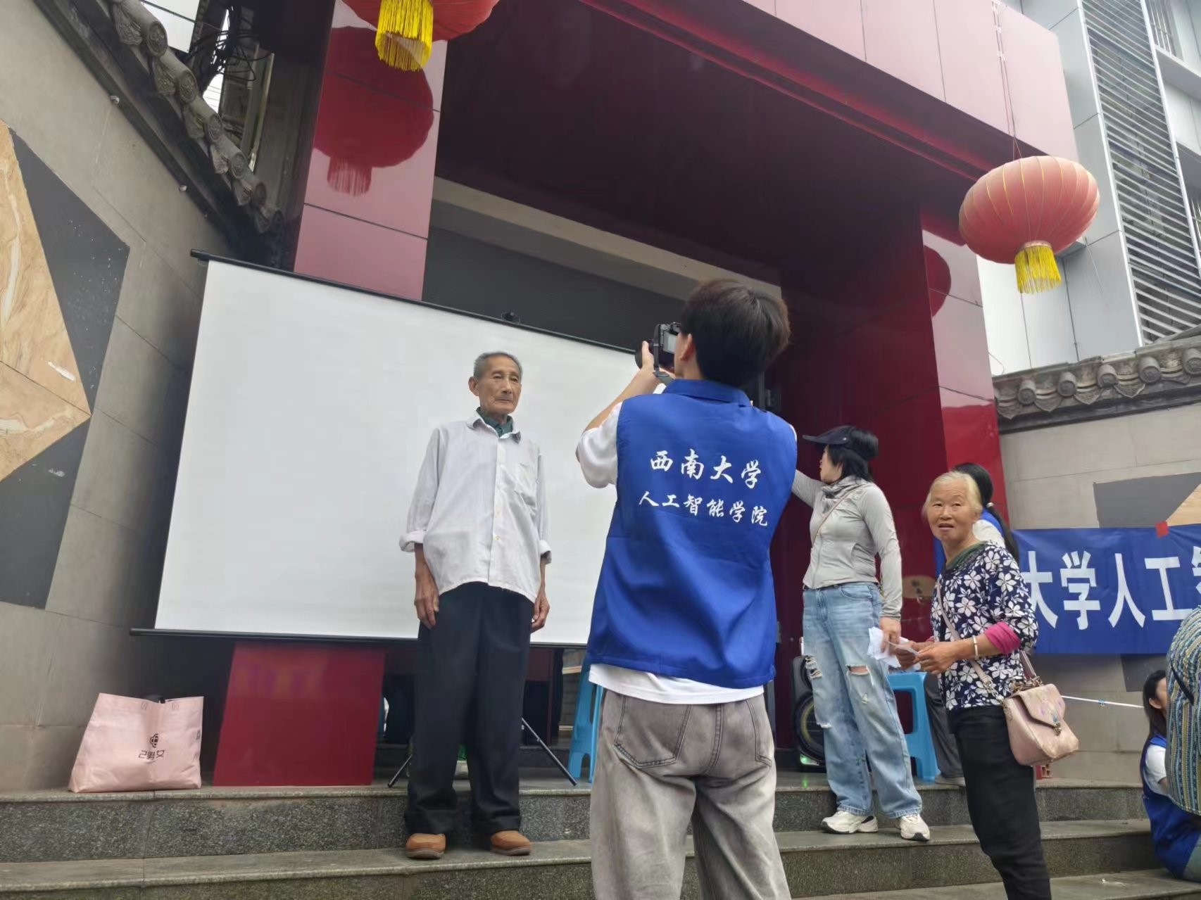 “这里的很多老人,他们一辈子都没离开过这个小镇,他们也想去见见外面的世界,留下旅行的足迹……”为满足镇上老人们的需求,AI照相馆的成员们于7月3日至4日间,利用自主改进的AI技术将照片背景替换成各种风景名胜,真正实现了AI云旅游,让村民们足不出户就能与全国风景名胜合影留念,同时也利用AI技术软件对老照片进行翻新和修复,让村民们的美好记忆继续延续。