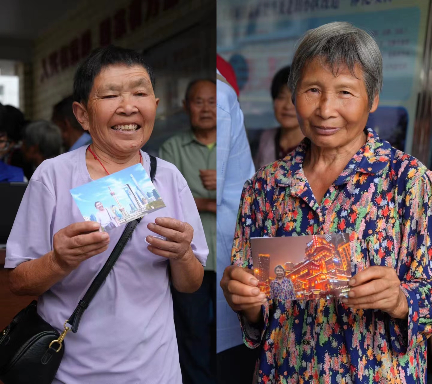 (老人们与照片合影)