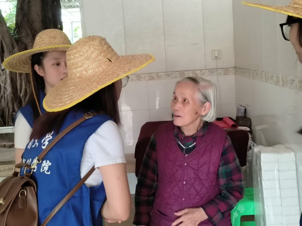(实践团成员走进村民家中进行宣讲)