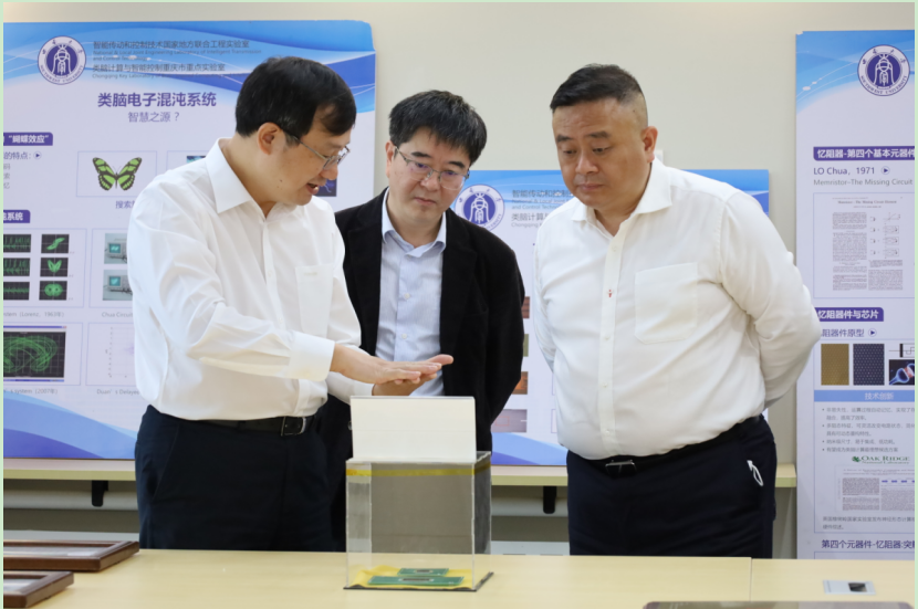 调研期间,马奇昌一行参观了重庆市类脑计算与智能控制重点实验室。段书凯向调研组展示了实验室重要创新成果,并详细介绍了公司科研团队依托类脑计算与智能控制重庆市重点实验室,主动服务人工智能国家战略,针对人工智能领域卡脖子技术,致力于类脑智能芯片、AI算法、智能装备领域的特色工作及阶段性成果。
