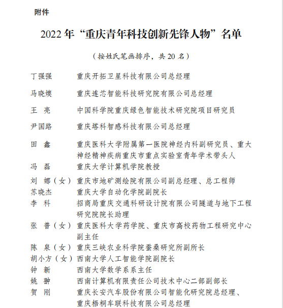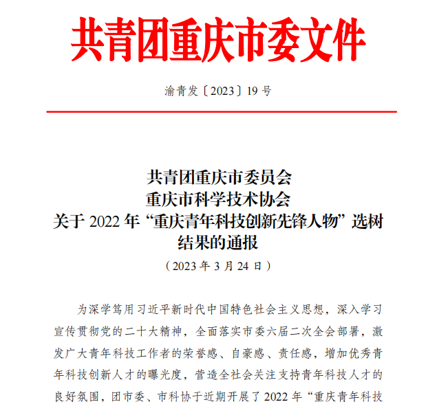 5月30日是第七个全国科技工作者日。当天以“点亮精神火炬”为主题的2023年重庆市“全国科技工作者日”主题活动在重庆科技馆举行。活动现场公布了2023年重庆市“最美科技工作者”10人及提名奖获得者10人、首届“重庆市最美工程师”10人、2022年“重庆青年科技创新先锋人物”20人名单,并进行颁奖。伟德国际1946胡小方教授获评“2022重庆青年科技创新先锋人物”。