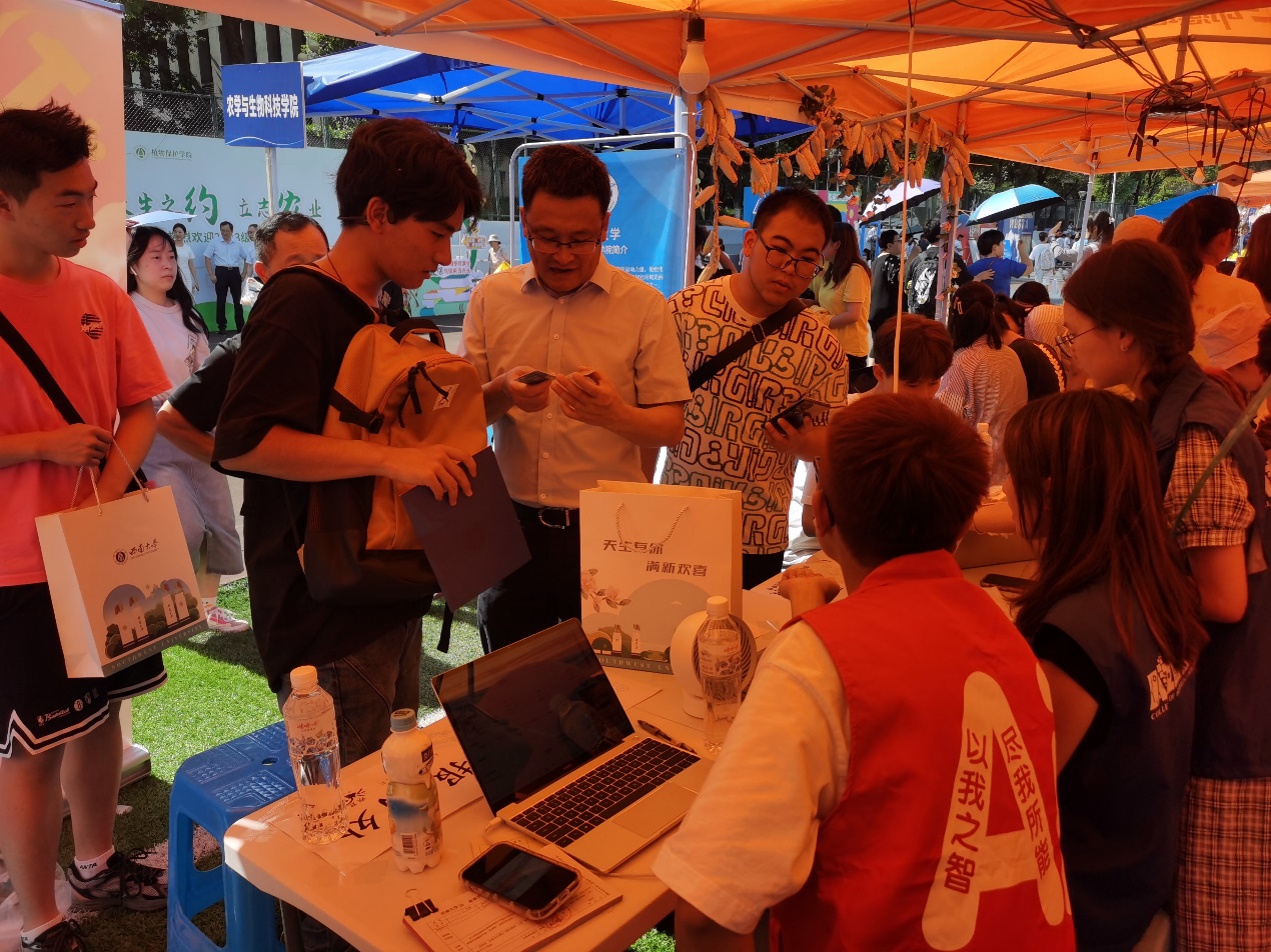 在迎新现场,迎新的老师、同学们用热情的笑容欢迎新生的到来。他们为新生提供校园信息、导览,解答各种疑问,并送上由公司准备的精美礼袋,在报道结束后,志愿者主动帮助他们搬运行李。新生们手中沉重的行李在志愿者的协助下,轻松地被运送到了宿舍楼。