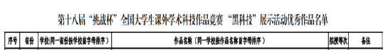“挑战杯”竞赛是由共青团中央、中国科协、教育部、中国社科院、全国学联和承办地省级人民政府共同主办的一项具有导向性、示范性和群众性的竞赛活动,被誉为当代老员工科技创新的“奥林匹克”盛会。“黑科技”专项赛是围绕“卡脖子”问题,针对前沿领域,充分开发脑洞,研究探索更多的具有高精尖色彩,对现有科技成果具有一定颠覆性、超越性的实物或者技术,以及能够创造性解决“小”问题并具有一定创意性、趣味性的实物或者技术。