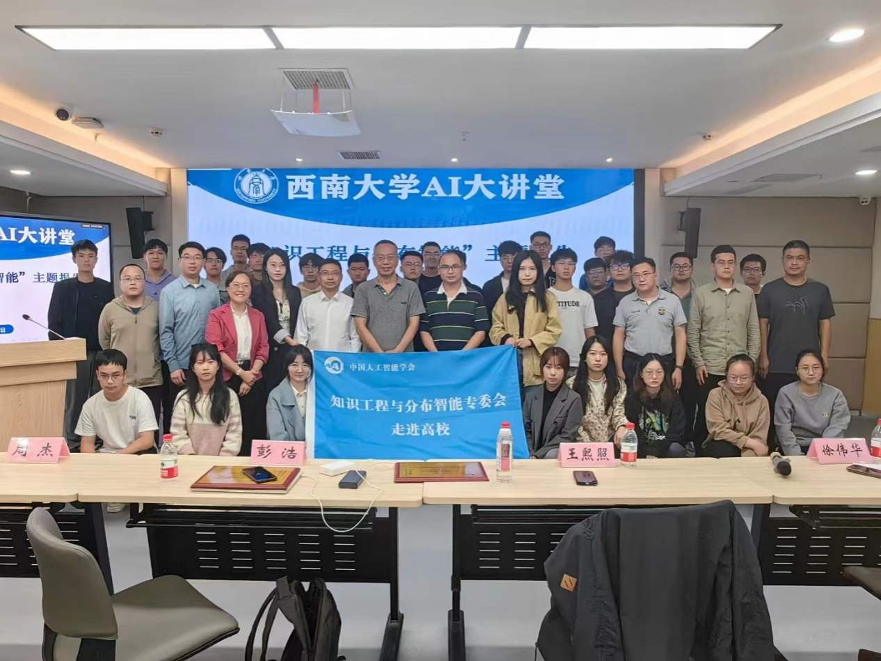 会议期间,组织开展了2023知识工程与分布智能前沿论坛暨知识工程与分布智能专委会走进伟德BV1946官网系列活动。欧洲科公司院士、国家杰出青年基金获得者、哈尔滨工业大学高会军教授,国家杰出青年基金、优秀青年基金获得者、国防科技大学刘新旺教授,国家优秀青年基金获得者、北京航空航天大学彭浩教授和CAAI知识工程与分布智能专业委员会主任委员、IEEE Fellow、CAAI Fellow、国际期刊IJMLC主编、深圳大学王熙照教授作了特邀专题报告,并与公司师生进行深入交流。