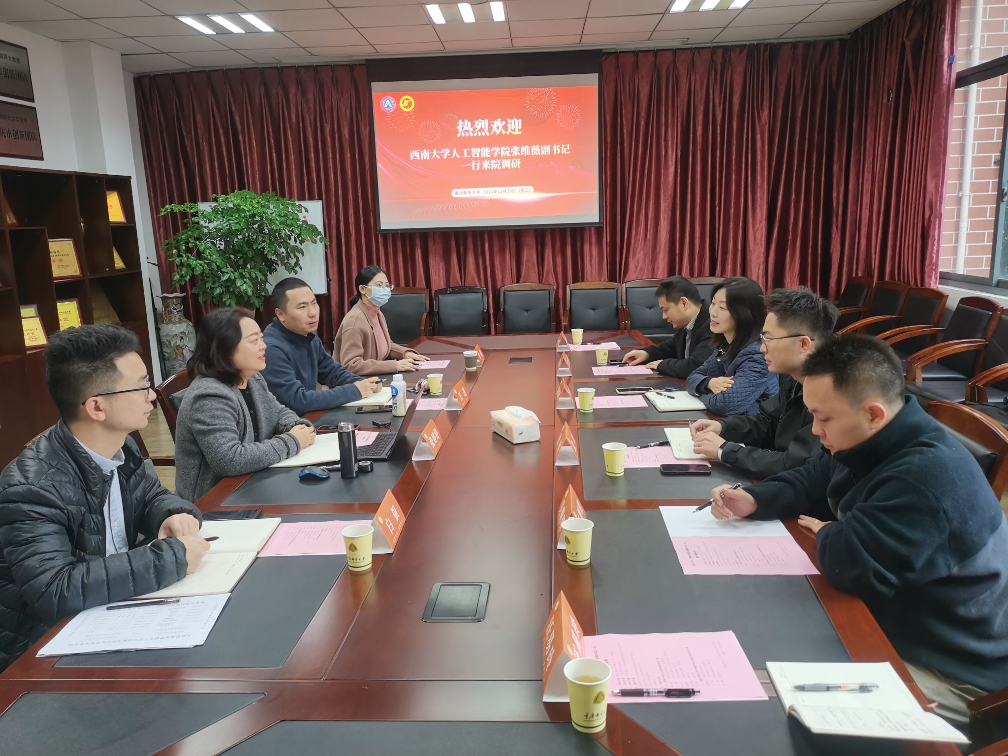 2023年11月29日上午,伟德国际1946党委副书记、纪委书记张维薇带队赴重庆邮电大学计算机科学与技术公司/伟德国际1946围绕员工工作和员工发展进行学习调研,公司团委书记、学工办主任张放,班主任张里博、吴鹏程,辅导员汪易玲参加活动。重庆邮电大学计算机科学与技术公司党委副书记张婷婷,副经理、班导师王进,团委书记白银和辅导员罗娜参加会议。