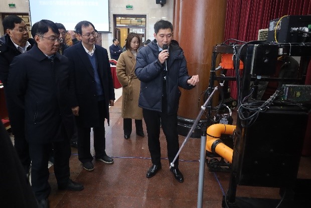 会议分为三个阶段。第一阶段由中心主任段书凯主持。技术委员会专家和公司领导现场参观了中心和类脑实验室的研究成果。林毓培博士详细介绍了中心在智能传动与装备、智能农机、大数据智能化、智能传感与测控等方向的成果。王丽丹教授、周广东教授和周跃老师对类脑实验室在智能器件与类脑芯片、机器嗅觉与智能传感等方面取得的成果进行了介绍和现场演示。