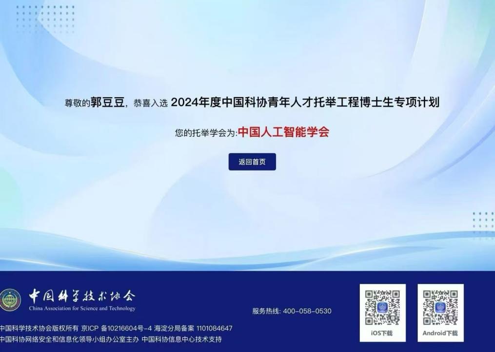 中国科协青年人才托举工程博士生专项计划结果近日公布,公司博士研究生郭豆豆(导师:徐伟华教授)成功入选。