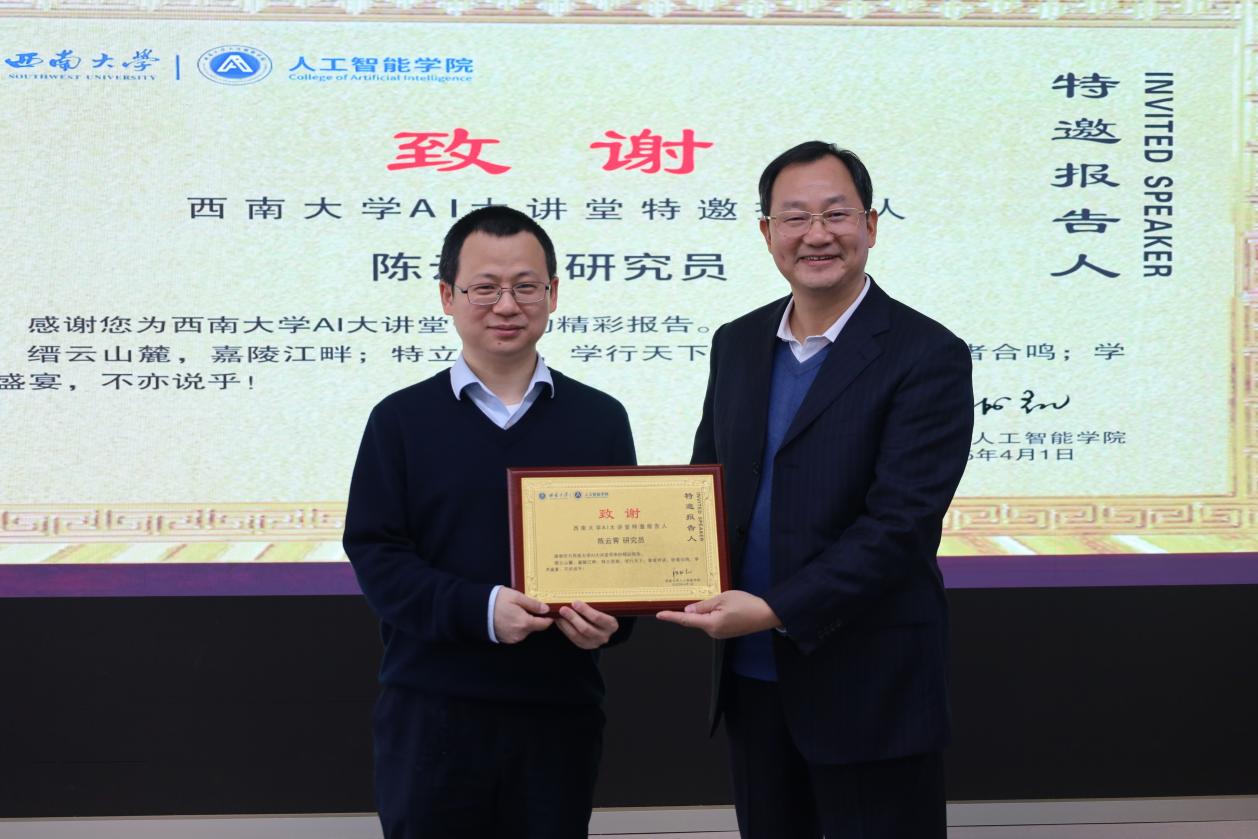 报告结束后,段书凯教授代表公司为陈云霁研究员颁发了“伟德BV1946官网AI大讲堂特邀报告人”证书,并对陈云霁研究员的精彩分享表示衷心的感谢。