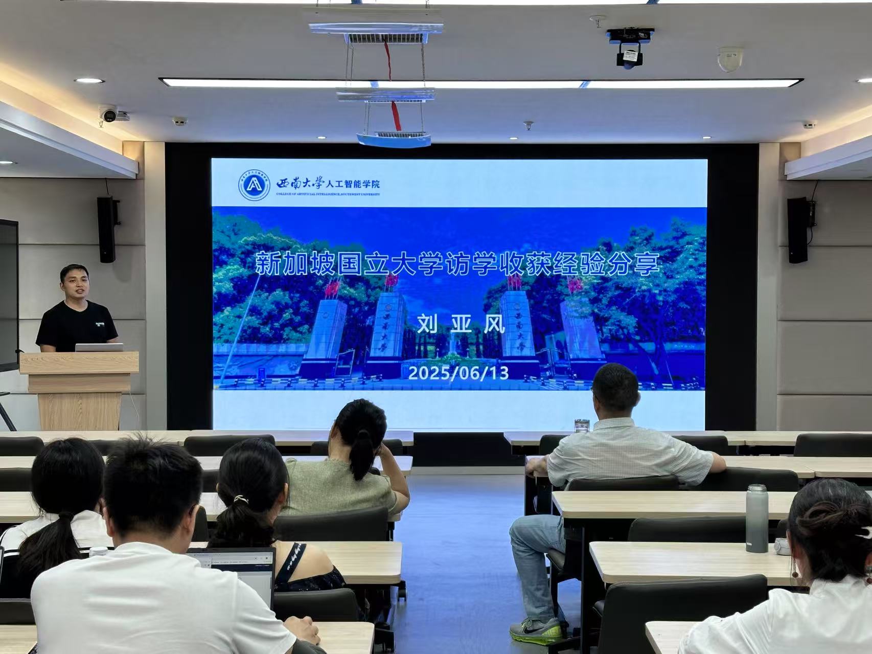 刘亚风副教授以“新加坡国立大学访学收获经验分享”为题,分享了学习、工作、生活等方面的体会,为青年老师在学术、文化和个人发展方面带来了诸多收获。