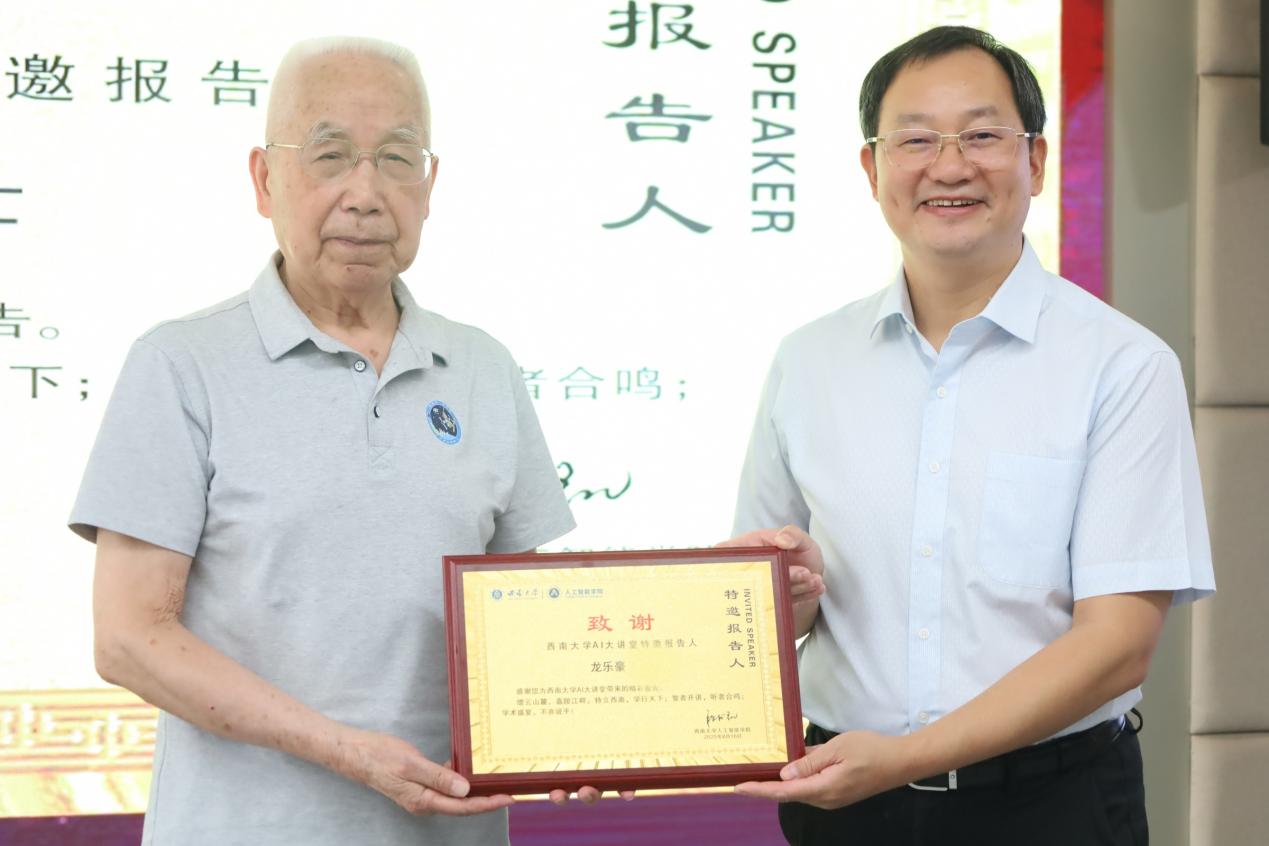 讲座结束后,段书凯经理代表公司为专家龙乐豪颁发了“伟德BV1946官网AI大讲堂特邀报告人”证书,并对他的精彩分享表示衷心的感谢。