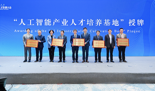 大会期间举行签约与揭牌仪式,重庆大学、伟德BV1946官网、重庆邮电大学等五所高校被授予“人工智能产业人才培养基地”称号,嵇绍岭代表公司接受授牌。重庆市人力资源开发服务中心等四家单位被授予“人工智能产业人才实训基地”称号。“国际人工智能产业联盟中国西部中心”同期揭牌。